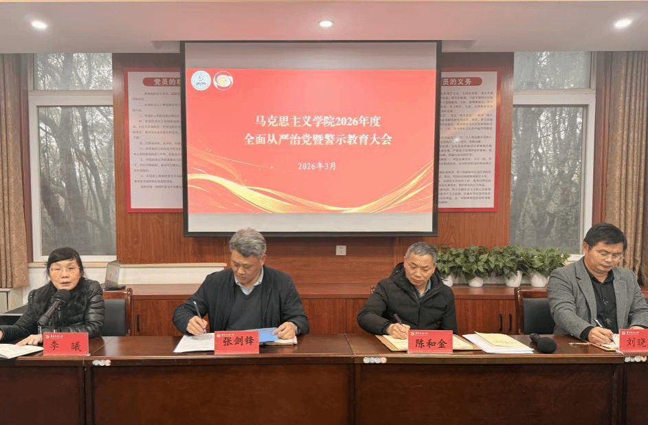 陈和金对学院2026年全面从严治党工作作部署:一要深化理论学习,筑牢思想根基。认真组织开展树立和践行正确政绩观学习教育,学习《习近平关于树立和践行正确政绩观论述摘编》,将学习教育有机融入思政课教学与政治理论学习,做到学深悟透、学以致用。二要从严规范党内政治生活。扎实做好2025年度组织生活会和民主评议党员工作,各党支部紧扣时间节点推进,确保月底前高质量完成。学院班子成员以普通党员身份参加所在支部会议,列席指导联系支部,严格落实督导责任,确保会议开出实效。三要深入贯彻学校全面从严治党工作会议精神。深入学习习近平总书记关于全面从严治党重要讲话精神,以永远在路上的坚韧和执着推进党的自我革命,持续营造风清气正的政治生态和育人环境。四要持续加强思政课教师队伍建设。通报专职思政课教师队伍建设专项整治进展,按照省教育厅和学校部署,不断壮大思想政治理论课教师队伍,为学院高质量发展夯实人才支撑。